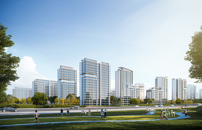 項目對太平河景觀空間進行最大化的導入,以“三月春山,碧水粼波”為核心設(shè)計理念,采用開放式建筑布局,確保項目界面與太平河景觀形成良好互動,分區(qū)分段設(shè)置沿河視線通廊,同時形成東西向景觀漫步系統(tǒng),增加片區(qū)的呼吸空間和街道界面層次。同時項目融入2 大設(shè)計專利,運用高品質(zhì)材料打造全幕墻外裝體系,構(gòu)建城市封面之作,讓人們置身于太平河畔的美好生態(tài)環(huán)境中,感受建筑的質(zhì)感和生命力。