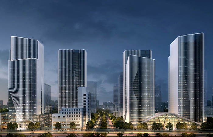建筑立面提取中國傳統(tǒng)山水文化理念,將自然的意境轉(zhuǎn)換為建筑中的意象運(yùn)用在建筑語言上;將自然的詩意帶入城市,在高密度、快節(jié)奏的區(qū)域重構(gòu)建筑和環(huán)境的共生關(guān)系,通過豎向的立面肌理與自然有機(jī)的曲線相結(jié)合,創(chuàng)造具有情感性、歸屬感的自然意境和具有標(biāo)示性的城市形象。