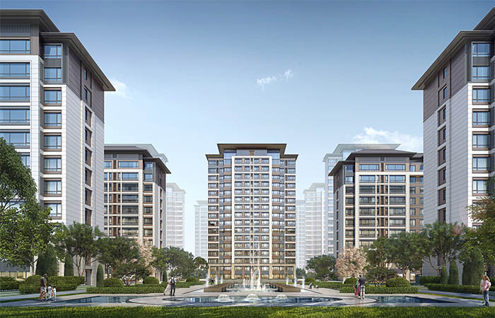 景觀:根據(jù)組團(tuán)分區(qū),東西向主軸景觀與南北布置的三層景觀院落形成兩個(gè)十字景觀軸,并與城市生態(tài)長廊相連。運(yùn)動(dòng)、兒童、閱讀等不同的景觀空間相互交融。院內(nèi)設(shè)置環(huán)形健康步道,串聯(lián)多種公共活動(dòng)空間和健身場地,滿足居民活動(dòng)需求。