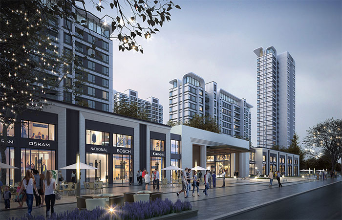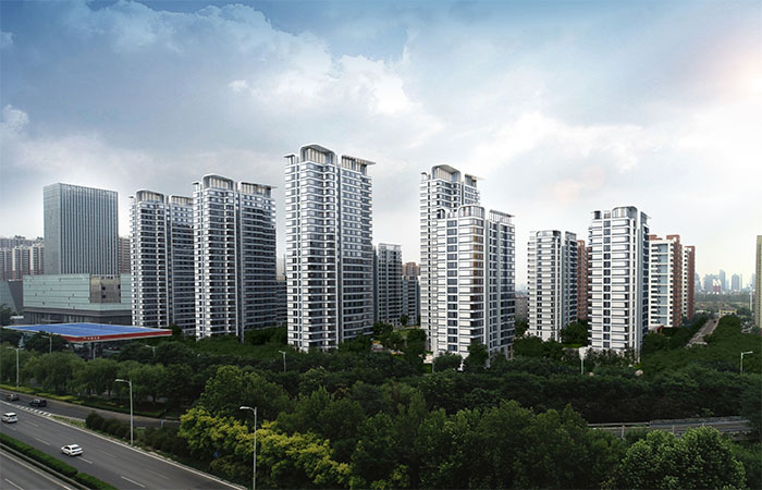 建立宜人的空間尺度,樓間距以50多米為主,地面空間與建筑高度能形成1:1的宜人比例,適宜居住。小區(qū)外圍高低起伏,沿二環(huán)路,由南向北依次升高,塑造出優(yōu)美的天際線。內(nèi)部均勻過(guò)度,以18F為主,北側(cè)受日照影響,布置11層住宅,同時(shí)降低對(duì)北側(cè)道路的壓迫。外部與城市交通聯(lián)動(dòng),結(jié)合城市交通規(guī)劃車行出入口,最大程度的緩解城市交通壓力。采用人車分流。實(shí)現(xiàn)出則繁華,入則靜謐。