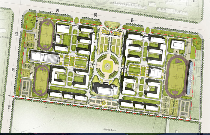 本項目對標(biāo)國內(nèi)外多所一貫制學(xué)校項目,深度考察,結(jié)合隆堯地處華北大地風(fēng)貌條件,濃縮出以新古典主義為學(xué)校基調(diào),融合現(xiàn)代元素,打造“容貌端莊,理性簡潔”的建筑形式,塑造高品質(zhì)的現(xiàn)代建筑組群形象。