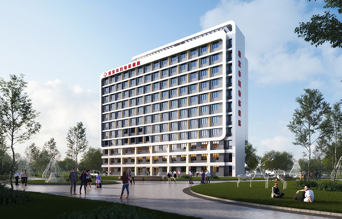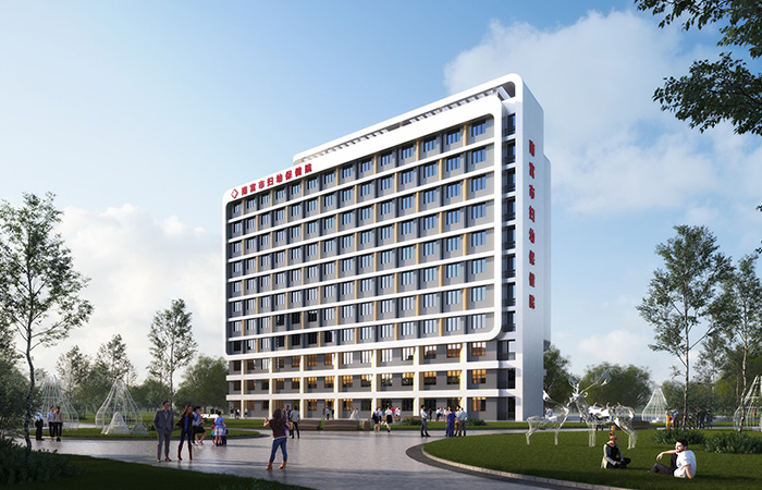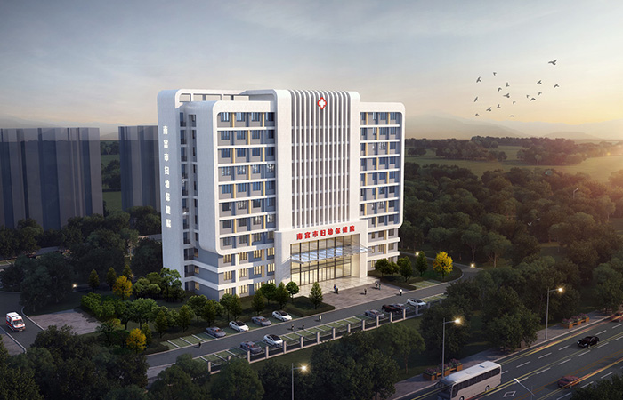 規(guī)劃設計在現(xiàn)狀建筑西側植入新建建筑體量,新建建筑與原有建筑形成中軸對稱的總體布局。在病房樓四周,設置大面積綠地景觀,營造出綠色共享的景觀區(qū)域,與自然為鄰,享受舒適環(huán)境。