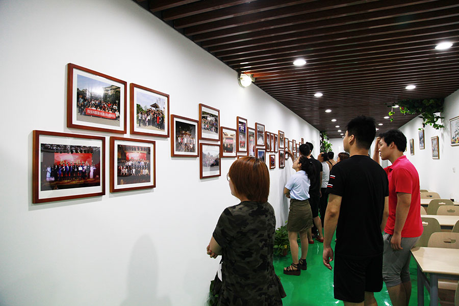 幽長的通道上,一面照片墻上記錄拓樸家人的美好時光