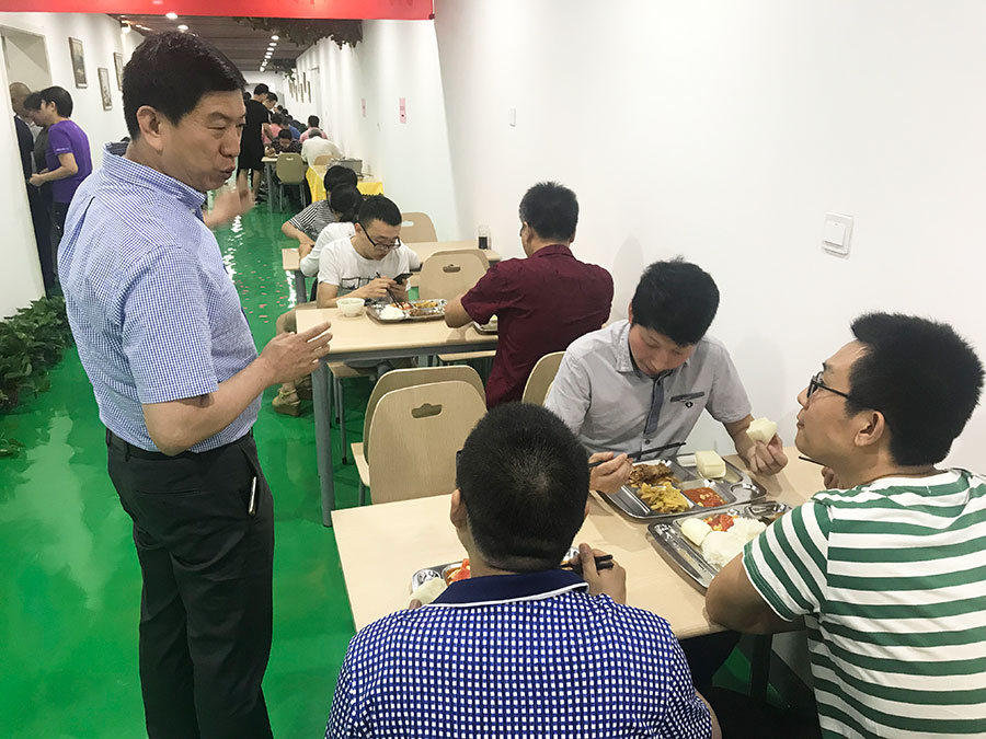 新食堂的炊煙起,這是全體拓樸人的一件喜事。公司領(lǐng)導(dǎo)艾武成董事長、毛國偉總經(jīng)理、閆斌副總經(jīng)理為員工新食堂剪彩。多么簡潔的開業(yè)大吉哦!毛總簡短的致辭,充滿祝賀、鼓勵和希望!這就是拓樸人的作風(fēng),腳踏實地,樸實無華!